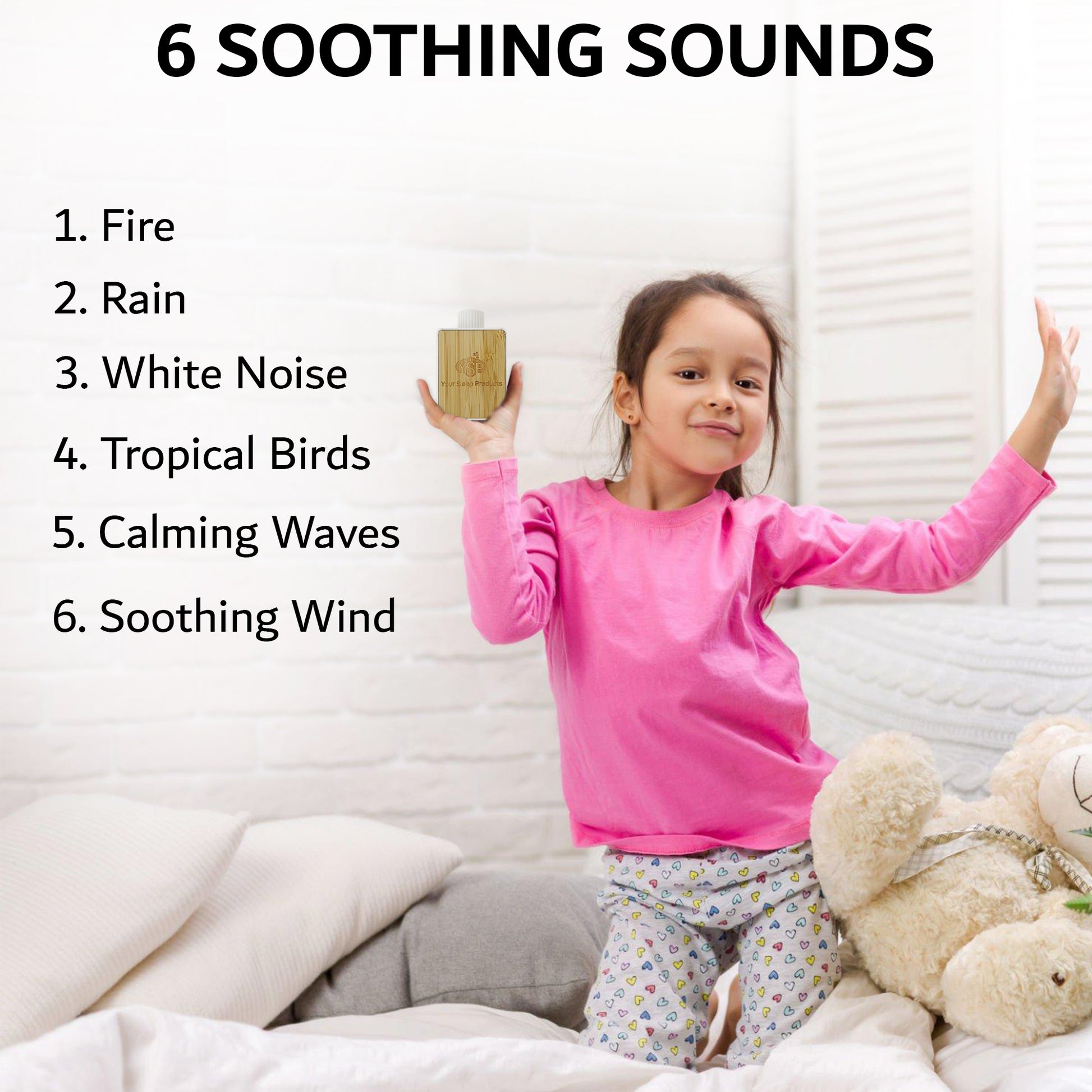 Featuring 6 Non-Looping Sleep Sounds: White noise, rain, ocean, bird, bonfire, and waves suitable for Baby and Kids and Adults. You can also use Your Sound Sleep Machine as a Bluetooth Speaker.